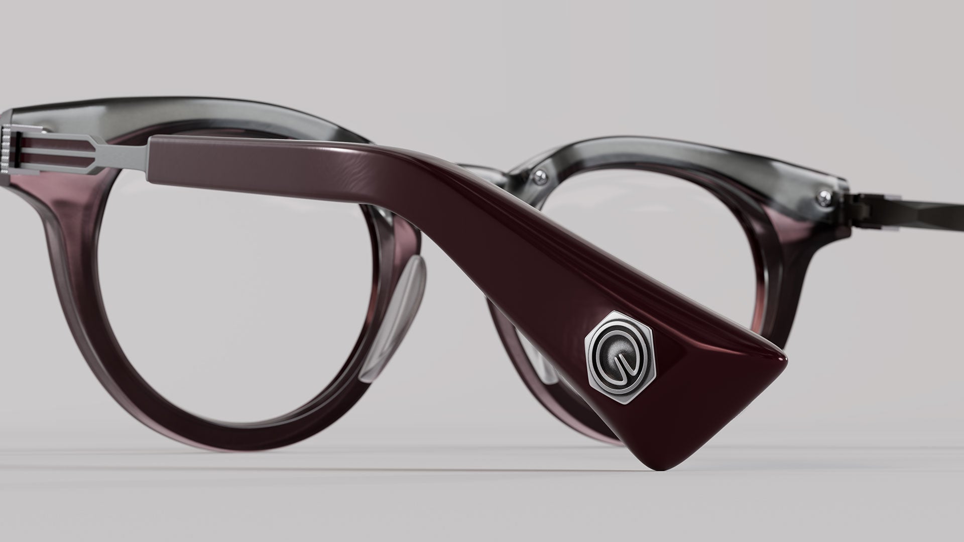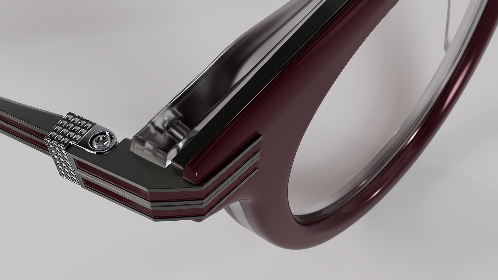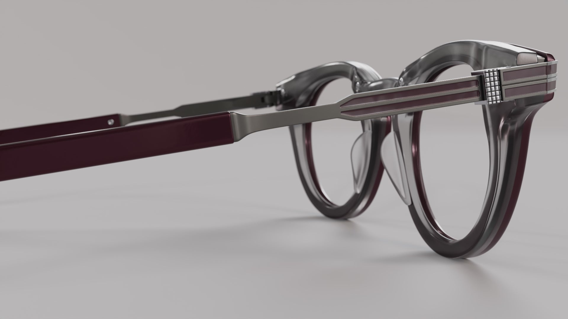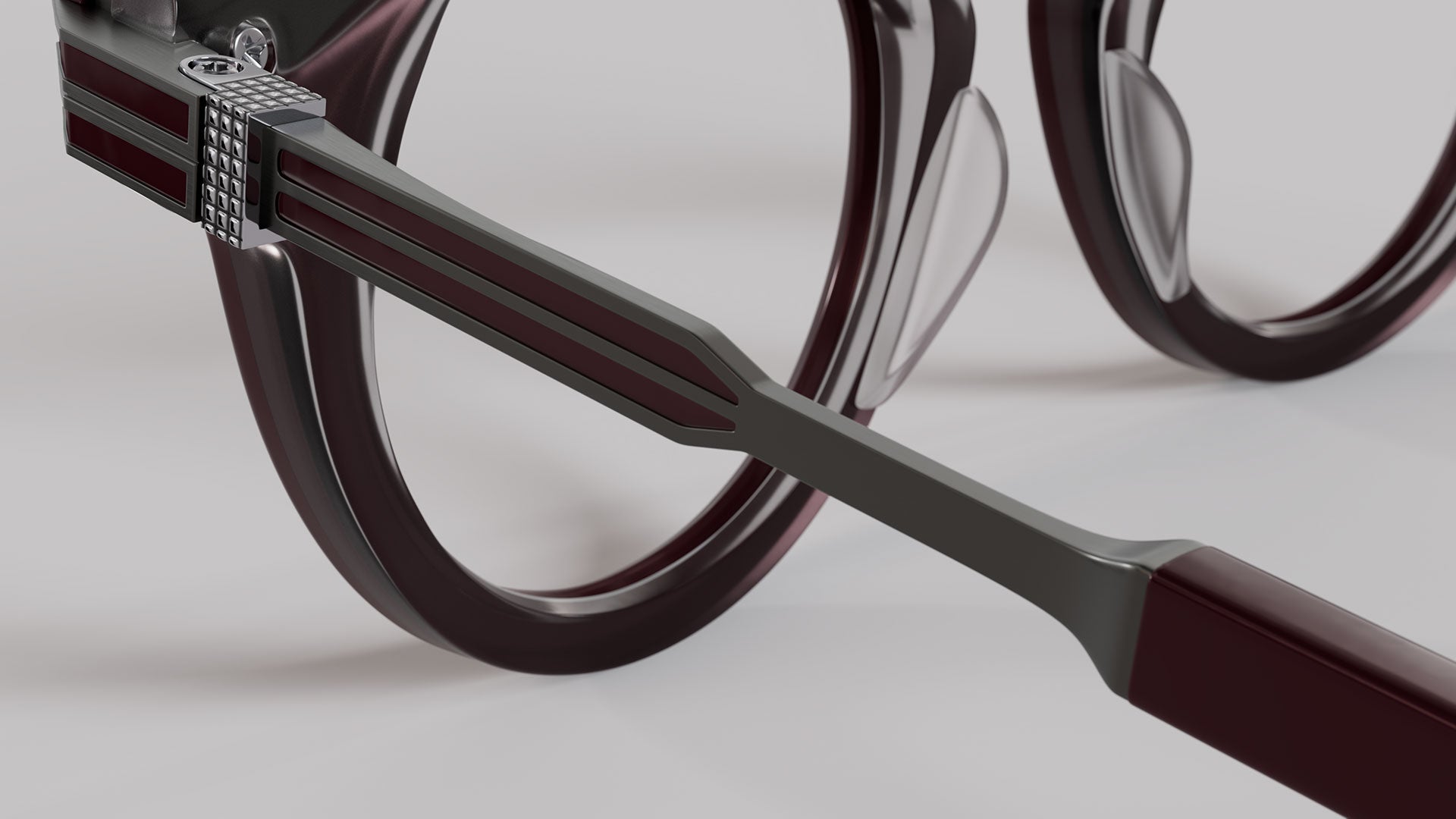 Brushed Gunmetal / Burgundy – Gray Crystal
